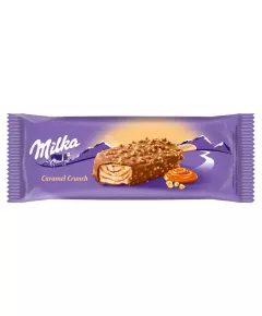 Dane produktowe Milka Lody waniliowe z sosem karmelowym w czekoladzie mlecznej 100 ml Składniki: MLEKO odtłuszczone odtworzone, czekolada mleczna (cukier, tłuszcz kakaowy, miazga kakaowa, MLEKO w proszku odtłuszczone, tłuszcz MLECZNY, serwatka w proszku (z MLEKA), emulgatory: lecytyny...
