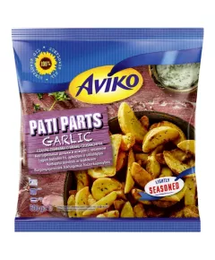 Dane produktowe Aviko Pati Parts Garlic Cząstki ziemniaka o smaku czosnkowym 600 g Składniki: ziemniaki, olej słonecznikowy, modyfikowana skrobia ziemniaczana, czosnek w proszku, sól, skrobia ziemniaczana, mąka ryżowa, dekstryna, pietruszka, maltodekstryna, zioła, olej rzepakowy,...