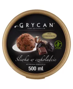 Grycan Lody śliwka w czekoladzie 500 ml Lody Grycan czekoladowe ze śliwkami to przysmak przeznaczony dla koneserów wykwintnych smaków. Tworzone są z naturalnych składników z dbałością o najdrobniejsze szczegóły, w oparciu o tradycyjną recepturę udoskonalaną przez pokolenia rodziny cukierników....