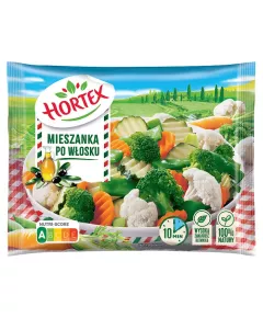 Dane produktowe Hortex Mieszanka po włosku 450 g Składniki: warzywa w zmiennych proporcjach: cukinia, fasola szparagowa płaskostrąkowa, marchew, kalafior, głąbiki brokułu, brokuł Dodatki Marka Hortex Dodatkowe informacje Więcej pysznych przepisów na: www.hortex.pl...