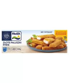 Dane produktowe FRoSTA Złote paluszki rybne z fileta 450 g (15 sztuk) 100 % naturalnego smaku Przygotowaliśmy dla Ciebie naturalnie pyszne Złote paluszki rybne - bez barwników, aromatów, wzmacniaczy smaku i substancji konserwujących. Za to pełne smaku i najlepszych składników. FRoSTA....