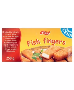 Dane produktowe Tiko Paluszki rybne 250 g (10 sztuk) Składniki: RYBY morskie 36%, mąka PSZENNA, woda, olej rzepakowy, skrobia ziemniaczana, cebula, mąka ryżowa, płatki ziemniaczane, błonnik PSZENNY, sól, przyprawy , drożdże Dodatki Marka Tiko Dodatkowe informacje...