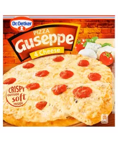 Dane produktowe Dr. Oetker Guseppe Pizza 4 sery 335 g Składniki: mąka PSZENNA, woda, 16 % SER (MOZZARELLA, EDAMSKI, TYLŻYCKI, SER PLEŚNIOWY BŁĘKITNY), ŚMIETANKA, olej rzepakowy, drożdże piekarskie, koncentrat pomidorowy, MASŁO, sól, skrobie modyfikowane, cukier, zioła, MLEKO...