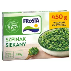 Dane produktowe FRoSTA Szpinak siekany 450 g Składniki: Dodatki Marka FRoSTA Dodatkowe informacje Przechowywanie Przechowywać w temperaturze poniżej -18 °C. Przechowywanie w domu: *(-6 °C): 4 dni, **(-12 °C): 3 tygodnie, ***(-18 °C): do daty minimalnej trwałości...