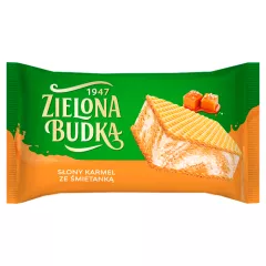 Dane produktowe Zielona Budka Lody słony karmel ze śmietanką 180 ml Składniki: MLEKO odtłuszczone odtworzone, cukier, wafle (mąka PSZENNA, olej rzepakowy, emulgator (lecytyny), sól, substancja spulchniająca (węglany sodu)), tłuszcz kokosowy, syrop glukozowy, syrop karmelowy 2,5 %...