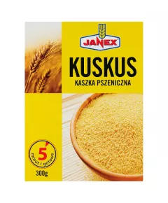 Dane produktowe Janex Kuskus kaszka pszeniczna 300 g Składniki: Dodatki Marka Janex Dodatkowe informacje Przechowywanie Przechowywać w suchym i chłodnym miejscu. Przechowywać w temperaturze otoczenia Jednostka sprzedażowa Waga brutto - 340 Wysokość- 181...