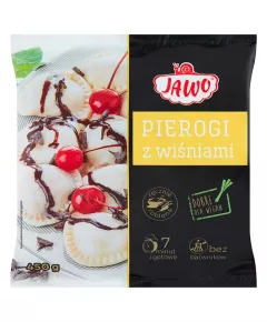 Dane produktowe Jawo Pierogi z wiśniami 450 g Składniki: mąka PSZENNA, wiśnie 29 %, woda, cukier, skrobia modyfikowana, olej rzepakowy, sól Dodatki Nie zawiera: Barwniki Marka Jawo Dodatkowe informacje Opakowanie nie zawiera BPA Produkt odpowiedni dla wegan...