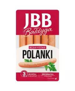 Dane produktowe JBB Bałdyga Polanki klasyczne Kiełbasa wieprzowa 225 g 100 % Polska Rodzinna Firma Składniki: mięso wieprzowe (80 %), woda, sól, skrobia ziemniaczana, błonnik grochowy, aromat, regulatory kwasowości: cytryniany sodu, octany sodu, białko wieprzowe kolagenowe,...