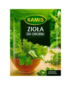 Dane produktowe Kamis Zioła do drobiu Mieszanka przyprawowa 15 g Delikatne mięso drobiowe lubi ziołowe towarzystwo. Na ostro i delikatnie - zioła zawsze podkręcają jego smak. W Turcji, Syrii i Libanie jadałem szaszłyki z kurczaka o wyczuwalnym smaku tymianku i papryki, marynowane w jogurcie...