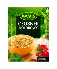 Dane produktowe Kamis Czosnek kolorowy Mieszanka przyprawowa 20 g W średniowieczu wierzono, że czosnek odstrasza wampiry i złe duchy. Jednocześnie przyciągał on wielbicieli dobrego jedzenia. Sam się do nich zaliczam, więc w każdym zakątku świata próbuję wszystkiego, co zawiera czosnek. Mam...