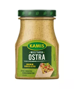 Dane produktowe Kamis Musztarda ostra 180 g Jej pikantność podkręci smak wrapów, strogonowa, gulaszu oraz pieczonych mięs Składniki: woda, GORCZYCA biała (w tym GORCZYCA ostra 8 %) i czarna, ocet spirytusowy, cukier, sól, ekstrakt z papryki Dodatki: Marka: Kamis Dodatkowe...