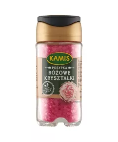 Dane produktowe Kamis Posypka różowe kryształki 73 g Cukrowa posypka Kamis nie zawiera w swym składzie oleju palmowego, barwników ani aromatów. Różowe kryształki to delikatny dodatek do lodów i deserów oraz dekoracji babeczek. Użyj ich na jeszcze płynną polewę lub posyp bitą śmietanę...