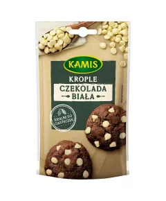 Dane produktowe Kamis Czekolada biała krople 100 g Czekolada w kawałkach to idealny dodatek do wypieków i deserów na zimno. Znakomicie sprawdzi się jako dekoracja ulubionych słodkości i pełna smaku polewa po rozpuszczeniu w temperaturze 45 °C. Składniki: cukier, tłuszcz kakaowy, MLEKO...