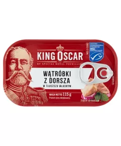Dane produktowe King Oscar Wątróbki z dorsza w tłuszczu własnym 115 g Wyborne wątróbki z dorsza we własnym, naturalnym oleju. Wyprodukowane z niemrożonej wątroby dorszowej. Prawdziwy rarytas, pozyskiwany z atlantyckich wód, zgodnie z ponad 100-letnią, norweską tradycją. Więcej informacji na...