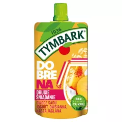 Dane produktowe Tymbark Przekąska na 2 śniadanie jogurt & zboża + owoce leśne 100 g Idealny na 2 śniadanie Źródło błonnika i witaminy E. Składniki: przecier z jabłek (45 %), JOGURT naturalny (20 %), przecier z bananów (15 %), sok z aronii z zagęszczonego soku (8 %), przecier z malin...