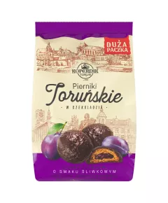Dane produktowe Kopernik Pierniki toruńskie w czekoladzie z nadzieniem o smaku śliwkowym 300 g Pierniki Toruńskie Legendarny smak Toruńskie Pierniki wypiekamy na bazie starannie wyselekcjonowanych składników. To połączenie delikatnego ciasta, mieszanki aromatycznych korzennych przypraw i...