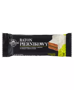 Dane produktowe Kopernik Baton piernikowy z nadzieniem o smaku limonki w białej czekoladzie 49 g Składniki: nadzienie 33 % [cukier, zagęszczony przecier jabłkowy, koncentrat limonki 0,3 %, regulatory kwasowości (kwas cytrynowy, kwas winowy), substancja zagęszczająca (pektyny),...