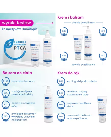 - nowość w pielęgnacji skóry atopowej, łuszczycowej, suchej i wrażliwej. Kwasy huminowe i fulwowe to organiczne substancje o ogromnych właściwościach zdrowotnych. Choć znane i wykorzystywane są od tysięcy lat, to dopiero niedawno opracowano technologię ich pozyskiwania i wykorzystywania w specjalistycznych dermokosmetykach. Produkty Humitopic jako pierwsze w Polsce są oparte na wyjątkowej formule H4topic–complex®, w której kwasy huminowe i fulwowe działają synergicznie, a ich moc jest spotęgowana. Kwas fulwowy to doskonały antyoksydant. Ma właściwości przeciwstarzeniowe, uelastycznia skórę oraz poprawia jej nawilżenie. Kwas huminowy ma właściwości przeciwzapalne, przeciwalergiczne, a także wspomagające gojenie ran. Formuła substancji humusowych H4topic–complex® zapewnia wielokierunkowe działanie oraz doskonałą pielęgnację Twojej skóry.
