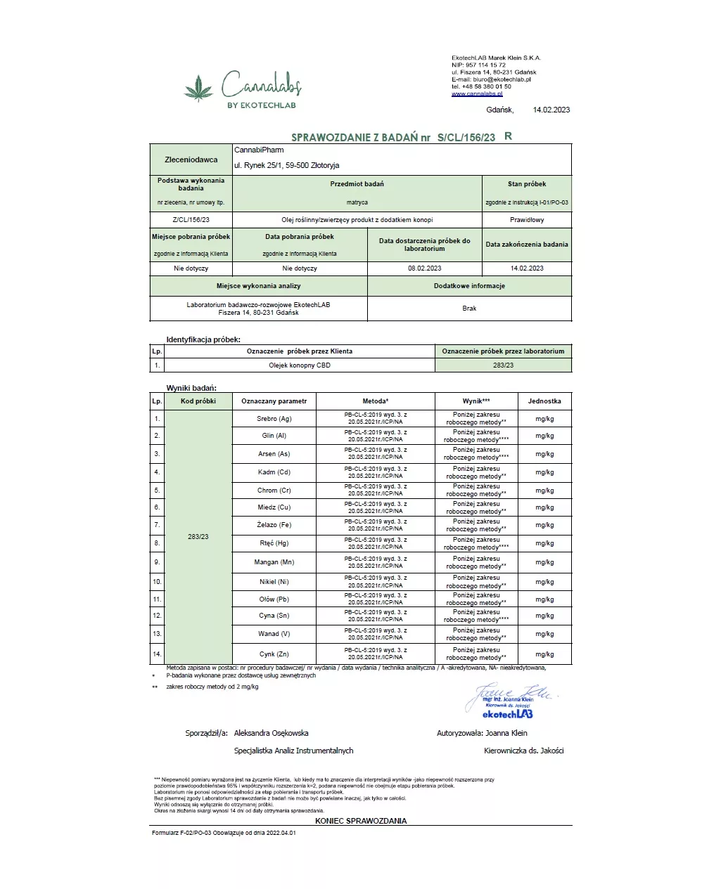 - Zawartość i czystość poddane są certyfikowanej analizie laboratoryjnej