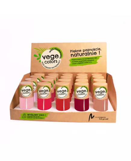 Pakiet VEGE Nail Polish zawiera 5 lakierów do paznokci (po 4 szt.), przyjaznych dla wegan.