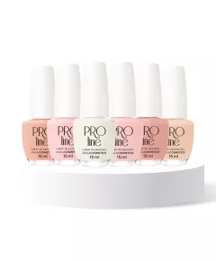 Zestaw zawiera :  5 kolorów po 2 szt. PRO Line do manicure typu French ( Fr01 do Fr05 ) 3 szt. podwójnie napigmentowanego lakieru białego z pędzelkiem do zdobień (do tworzenia linii uśmiechu na końcówce paznokcia) czyli koloru Fr00 Wzornik kolorów French Proline