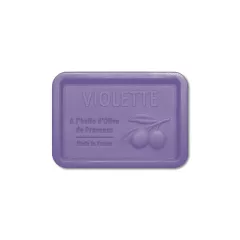 Mydło z Prowansji – VIOLETTE (FIOŁKI) Mydło z dodatkiem oliwy z oliwek! 98% naturalnych składników! Zapach:  Violette (fiołki) Waga: 120 g Wymiary:  8,6 cm x 6,1 cm x 2,7 cm Producent:  Esprit Provence