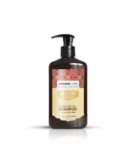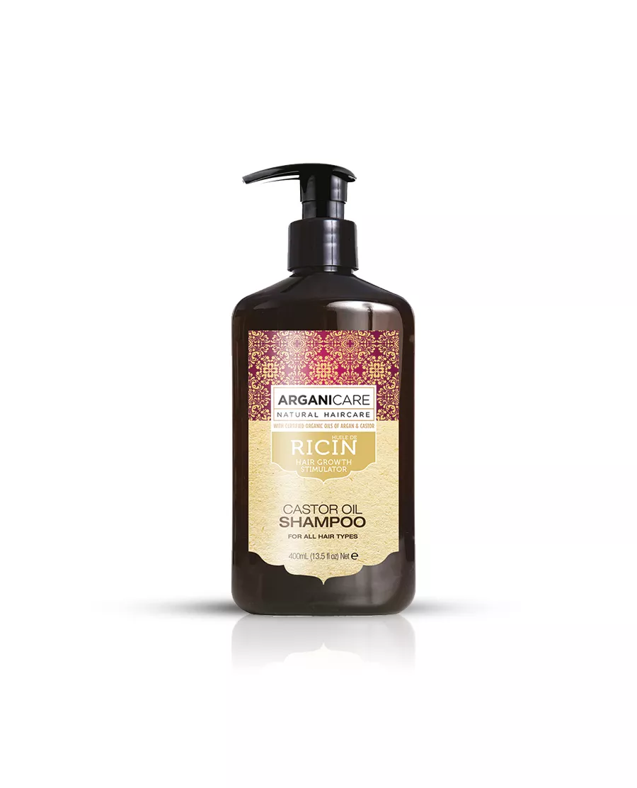 Arganicare Szampon Castor Oil to połączenie w linii Ricin dwóch aktywnych olei arganowego i rycynowego, daje maksymalny efekt zdrowych i mocnych włosów. Olej arganowy odpowiedzialny za silne nawodnienie i regeneracje włókien włosów, oraz olej rycynowy, który zawiera kwasy tłuszczowe oraz kwasy omega 6 i 9, które stymulują wzrost nowych włosów, wzmacniają, naturalnie zagęszczają. Poprawiają także jakość i elastyczność włosów, które wydają się bardziej elastyczne, lśniące i zdrowe.