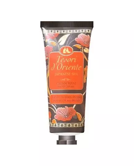 Krem do rąk Tesori d`Oriente JAPANESE SPA z olejkiem TSUBAKI 75 ml. Intensywny, otulający bukiet kwiatowy ze świeżymi, delikatnymi nutami. Niezapomniany, promienny, zmysłowy zapach Tsubaki jest tradycyjnie stosowane w pielęgnacji skóry ze względu na swoje wyjątkowe właściwości zmiękczające, nawilżające, odżywcze i przeciwutleniające. Tradycyjny symbol sztuki kwiatowej, piwonia jest czczona od tysięcy lat, ponieważ uważana jest za amulet przynoszący szczęście. Kwiat o ciągle zmieniającym się pięknie.