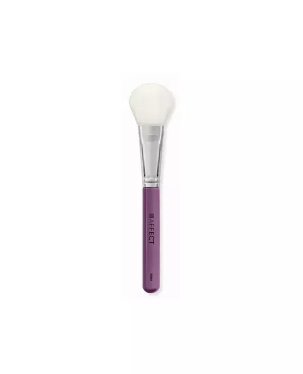 Pędzel do pudru, który dzięki swoim niedużym rozmiarom może pełnić również funkcję pędzla do bronzera lub różu. Puchaty, delikatnie spłaszczony kształt pędzla ułatwia aplikację produktu bez pylenia się czy osopywania. Delikatne, niezbyt mocno zbite włosie umożliwia modelowanie kształtu twarzy oraz miękkie roztarcie produktów. Wykonany z włókna stynetycznego i naturalnego włosia koziego.