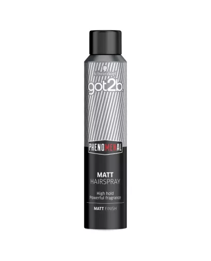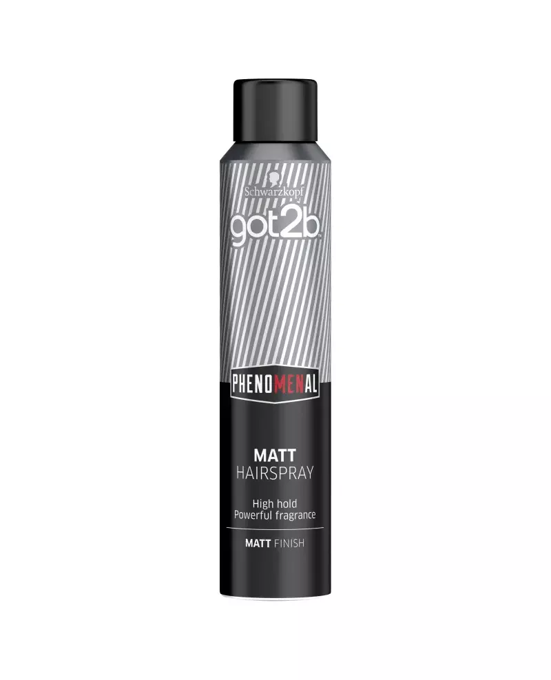 Matowy lakier do włosów got2b phenomenal silnie utrwali Twoje włosy, nada im matowe wykończenie i wyrazisty zapach.Wyznaczaj trendy w świecie unikalnych fryzur, bo It's got to be got2b!Odkryj w sobie prawdziwego dżentelmena z naszą nową linią got2b inspirowaną barber shopami. Lakier do włosów Schwarzkopf got2b phenommenal mocno utrwala wymodelowaną fryzurę, pozostawiając włosy ponadczasowo zadbane i z matowym wykończeniem.- Dla phenomenalnie zadbanej fryzury!- Średni poziom utrwalenia.- Naturalne matowe wykończenie i wyrazisty zapach.- Łatwa aplikacja i długotrwała kontrola nad stylizacją.- Formuła wegańska.got2b- Wysokiej jakości produkty, które spełniają wysokie oczekiwania oraz wykraczają poza stylizację włosów: pozwalają doświadczać, kim jesteś i pokazywać na co Cię stać!Twoje włosy krzyczą „popatrz na mnie” dzięki innowacyjnej gamie produktów do stylizacji got2b. Inspirowane street stylem i najnowszymi trendami, zaskakują niezwykłymi formami, teksturami i kolorami opakowań- nieważne czy chcesz mieć na głowie zabójczą objętość, czy matową fryzurę a'la surfer wybierz got2b!Ponieważ got2b inspiruje. Ponieważ got2b wyraża indywidualność.