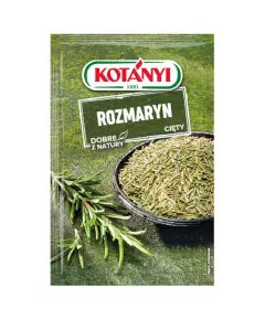 Dane produktowe Kotányi Rozmaryn cięty 16 g Dobre z natuy Rozmaryn jest silnie aromatyczny, żywiczny i delikatnie gorzki. Podczas gotowania olejki eteryczne rozwijają wspaniałe śródziemnomorskie nuty. Rozmaryn Kotányi można swobodnie stosować do gotowania, pieczenia i smażenia. Zastosowanie:...