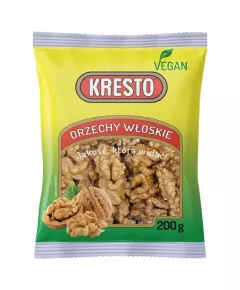 Dane produktowe KRESTO Orzechy włoskie 200 g Orzechy włoskie KRESTO są idealnym sposobem na szybką przekąskę pomiędzy posiłkami. Dobrze sprawdzą się również jako dodatek do śniadań, deserów lub sałatek, nadając potrawom ciekawy smak. Orzechy włoskie KRESTO są idealnym sposobem na szybką...
