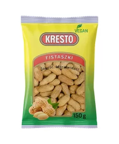 Dane produktowe KRESTO Fistaszki 150 g Orzechy fistaszki idealnie nadają się jako przekąska. Posiekane można dodać do sałatek, dań mięsnych lub makaronów. Sprawdzą się również w roli komponenta do ciast i deserów. Są też głównym składnikiem popularnego masła orzechowego i kremów orzechowych....