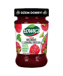 Dane produktowe Łowicz Dżem malinowy z czerwoną porzeczką o obniżonej zawartości cukrów 280 g Składniki: owoce (35 %) (w tym maliny (25 %), czerwone porzeczki (10 %)), cukier, woda, substancja żelująca - pektyny, regulator kwasowości - kwas cytrynowy, Sporządzono z 35 g owoców na 100 g...