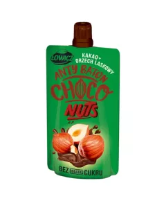 Dane produktowe Łowicz Anty Baton Mus kakao + orzech laskowy 100 g Składniki: przeciery z: bananów, jabłek, fasoli, pasta z ORZECHÓW LASKOWYCH (4,5 %), kakao naturalne (1 %), przecier z daktyli, zagęszczony sok cytrynowy, aromaty naturalne Dodatki Zawiera: Smaki / Aromaty Marka...