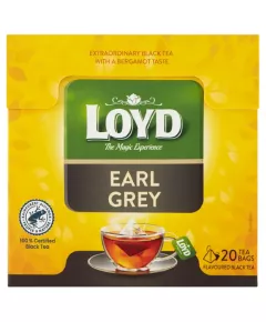 Dane produktowe Loyd Herbata czarna aromatyzowana earl grey 40 g (20 x 2 g) Składniki: mieszanka herbat czarnych*, aromat bergamotowy, * 100 % Rainforest Alliance Certified Dodatki Marka Loyd Dodatkowe informacje Facebook/Loyd Instagram: Loyd_Official loydtea.com...