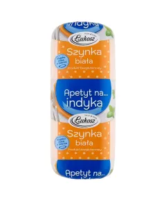 Dane produktowe Łukosz Apetyt na... indyka Szynka biała Od 30-u lat w rodzinnej firmie Polskie Mięso i Wędliny Łukosz powstają wędliny z wykorzystaniem najlepszego mięsa z indyka. Oferta kiełbas, wędzonek, wyrobów na kanapki i galantyn to bogata propozycja dla wszystkich ceniących smak i...