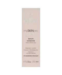 Dane produktowe Miya MySkinPro Serum kwasowe 30 ml Zaawansowana codzienna pielęgnacja skóry twarzy, okolic oczu, szyi i dekoltu Serum kwasowe poprawiające mikrorzeźbę skóry twarzy, okolic oczu, szyi i dekoltu. Wyraźnie wygładza, napina, zapewnia odnowę naskórka, zmniejsza widoczność...
