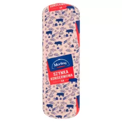 Dane produktowe Morliny Szynka konserwowa Składniki: mięso wieprzowe 59%, woda, skrobia ziemniaczana, sól, białko SOJOWE, stabilizator: E451, substancja zagęszczająca - E407a, BŁONNIK PSZENNY BEZGLUTENOWY, białko wieprzowe kolagenowe, przeciwutleniacz: E316; E301, maltodekstryna,...