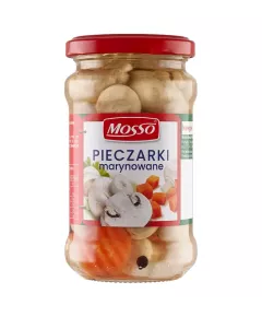 Dane produktowe Mosso Pieczarki marynowane 290 g Składniki: pieczarki (54 %), woda, ocet spirytusowy, marchew, cukier, sól, cebula, przyprawy, przeciwutleniacz: PIROSIARCZYN SODU Dodatki Zawiera: Przeciwutleniacze Marka Mosso Dodatkowe informacje Przechowywanie...
