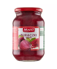 Dane produktowe Mosso Buraczki tarte 450 g Składniki: buraki ćwikłowe (94 %), woda, ocet spirytusowy, cukier, sól Dodatki Marka Mosso Dodatkowe informacje Przechowywanie Najlepiej spożyć przed: data na zakrętce. Po otwarciu przechowywać w lodówce. Przechowywać w...