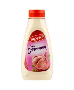 Dane produktowe Mosso Sos czosnkowy 310 g Składniki: olej rzepakowy z pierwszego tłoczenia, woda, cukier, ocet spirytusowy, żółtko JAJA, odtłuszczone MLEKO w proszku, skrobia modyfikowana, sól, GORCZYCA, przyprawy i ekstrakty przypraw, czosnek mielony (0,2 %), szczypiorek (0,13 %),...