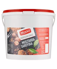 Mosso Professional Musztarda sarepska 2,5 kg Musztarda sarepska. Składniki woda, ocet spirytusowy, gorczyca biała i czarna (17%), cukier, sól, przyprawy, glukoza, barwnik: ekstrakt z kurkumy w 100 g Wartość energetyczna 395 kJ Wartość energetyczna 94 kcal Tłuszcz 3,9 g w tym kwasy...