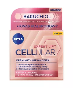 Dane produktowe Nivea Cellular Expert Lift Krem Anti-Age na dzień SPF 30 50 ml NIVEA Cellular Expert Lift Krem Anti-Age na dzień SPF 30 wyraźnie poprawia kontur twarzy dzięki połączeniu silnych składników przeciwstarzeniowych nowej generacji od NIVEA. Czysty Bakuchiol, aktywny składnik...