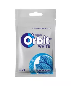 Dane produktowe Orbit White Freshmint Bezcukrowa guma do żucia 29 g (21 sztuk) Pomaga usuwać przebarwienia i utrzymać naturalną biel zębów. Żuj po jedzeniu i piciu przez co najmniej 20 minut. Zróżnicowana, zbilansowana dieta i zdrowy tryb życia są ważne. Składniki: substancje...