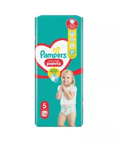 Dane produktowe Pampers Night Pants Pieluchomajtki, rozmiar 5, 22 sztuk, 12kg-17kg Pieluchomajtki Pampers Night Pants gwarantują pełną ochronę przed przeciekaniem nawet do 12 godzin, zapewniając dziecku spokojny sen. Dzięki rewolucyjnej kieszonce Stop & Protect, która zapobiega przeciekaniu...