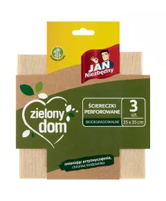 Dane produktowe Jan Niezbędny Zielony dom Ściereczki perforowane biodegradowalne 35 cm x 35 cm 3 sztuki Perforowane ściereczki bambusowe idealnie nadają się do czyszczenia na mokro i wycierania na sucho. Są miękkie i delikatne, a jednocześnie wyjątkowo chłonne. Dzięki specjalnej, perforowanej...