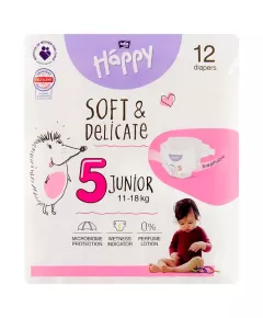 Dane produktowe Bella Baby Happy Pieluszki jednorazowe 5 junior 11-18 kg 12 sztuk Pieluszki jednorazowe. Nowoczesna konstrukcja zapewnia optymalną chłonność i wysoki komfort użytkowania. Produkt z atestem NIZP-PZH Pozytywna opinia Instytutu Matki i Dziecka nr Op-5544, ważna do 30.04.2026 r....
