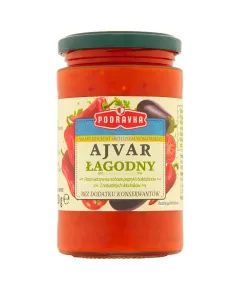 Dane produktowe Podravka Ajvar łagodny 350 g - Odpowiedni dla wegan - Oryginalna chorwacka receptura - Podkreśla smak dań mięsnych i warzywnych - Idealny do dań z grilla - Doskonały do kanapek, tostów i pizzy Składniki: papryka (76%), bakłażany (12%), olej słonecznikowy, ocet...