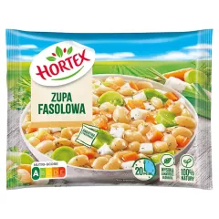 Dane produktowe Hortex Zupa fasolowa 450 g Składniki: warzywa 99 % w zmiennych proporcjach: fasola blanszowana 50 %, marchew, SELER, pietruszka, por, przyprawy 1 % (sól, naturalne aromaty w tym aromat dymu wędzarniczego, cebula, majeranek, czosnek) Dodatki Zawiera: Smaki / Aromaty...